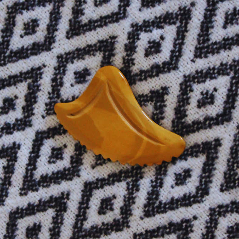 CHIA-designed gua sha in exclusive mookaite for treatment of both face and body. A compact, handy size that fits all hands.